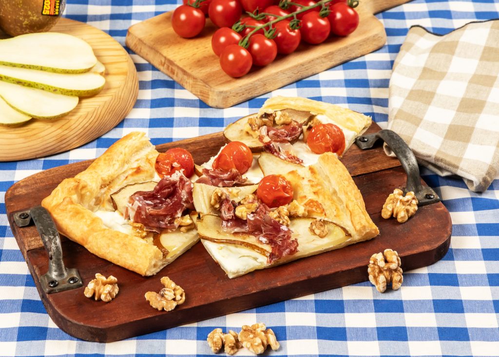Coca de pera amb pernil ibèric