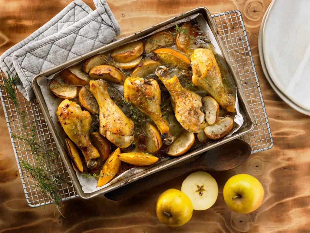 Cuixa de pollastre amb pomes del Pirineu, taronges i panses