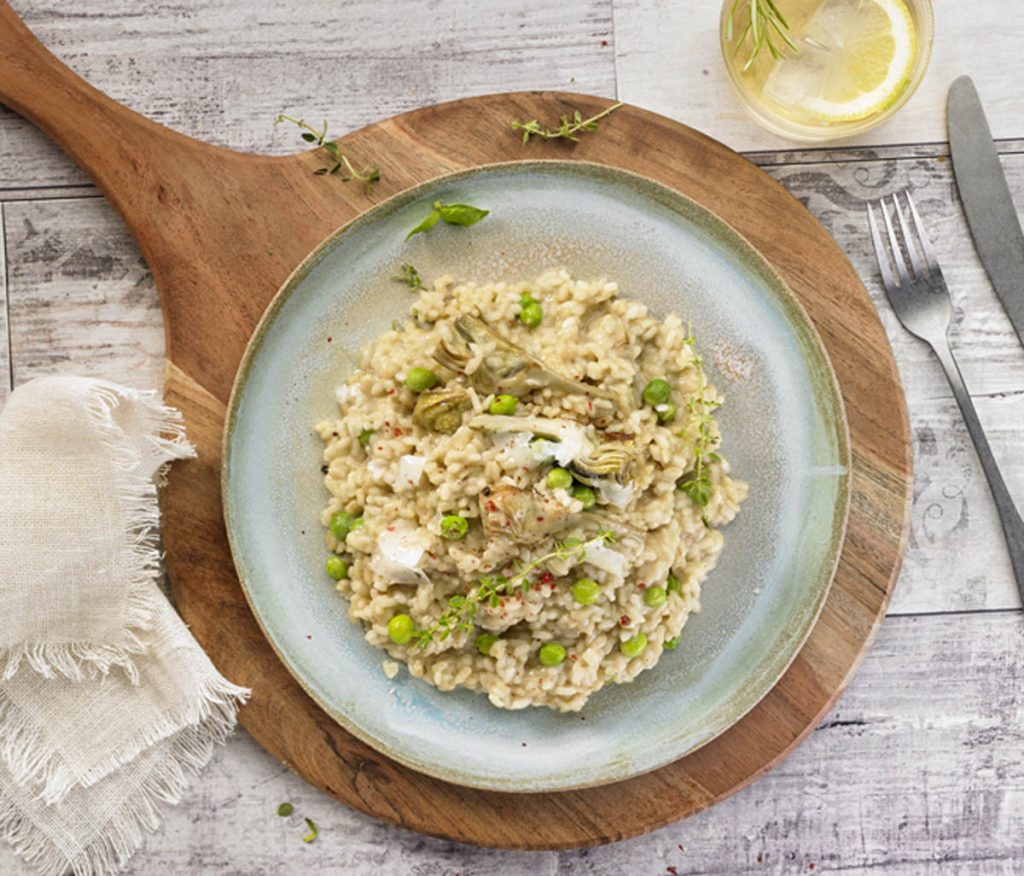 Risotto de alcachofas y guisantes
