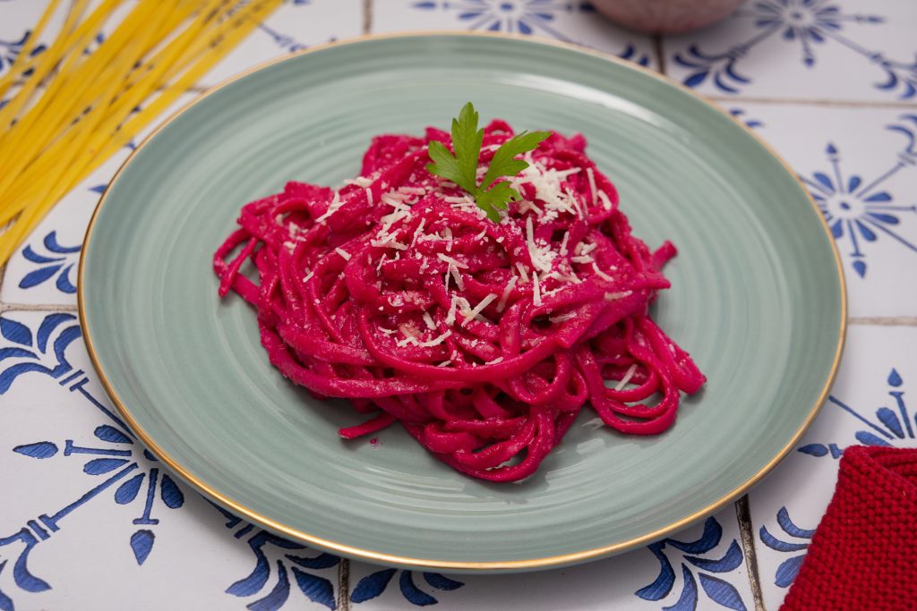 Pasta rosa con remolacha y yogur