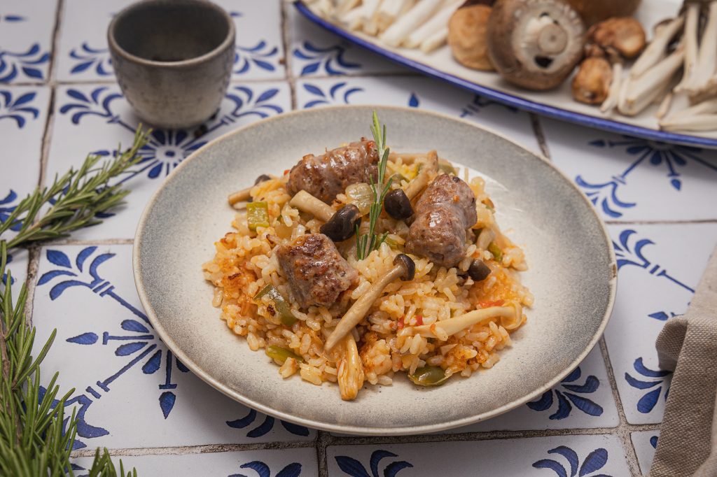 Arroz fácil con butifarra y setas