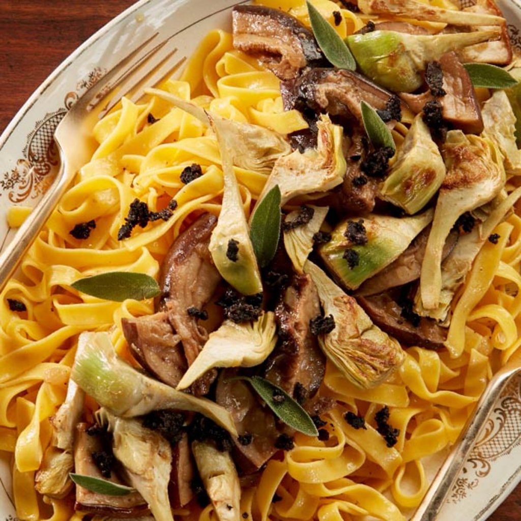 Pasta con ceps, alcachofa y trufa