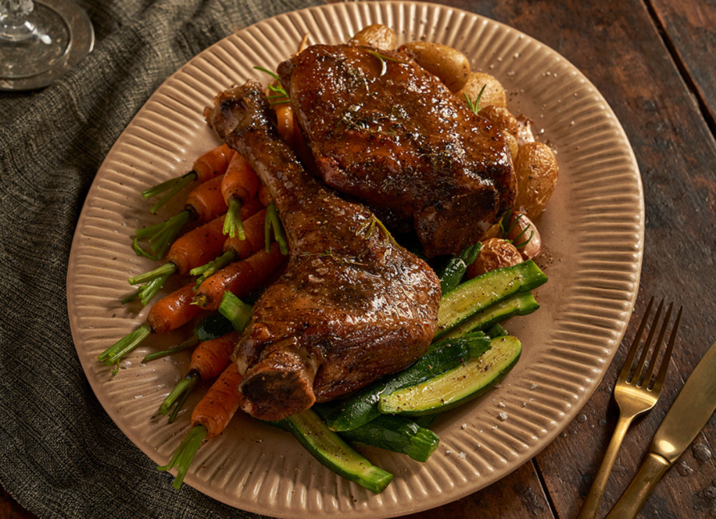 Muslo de cabrito con verduritas y romero