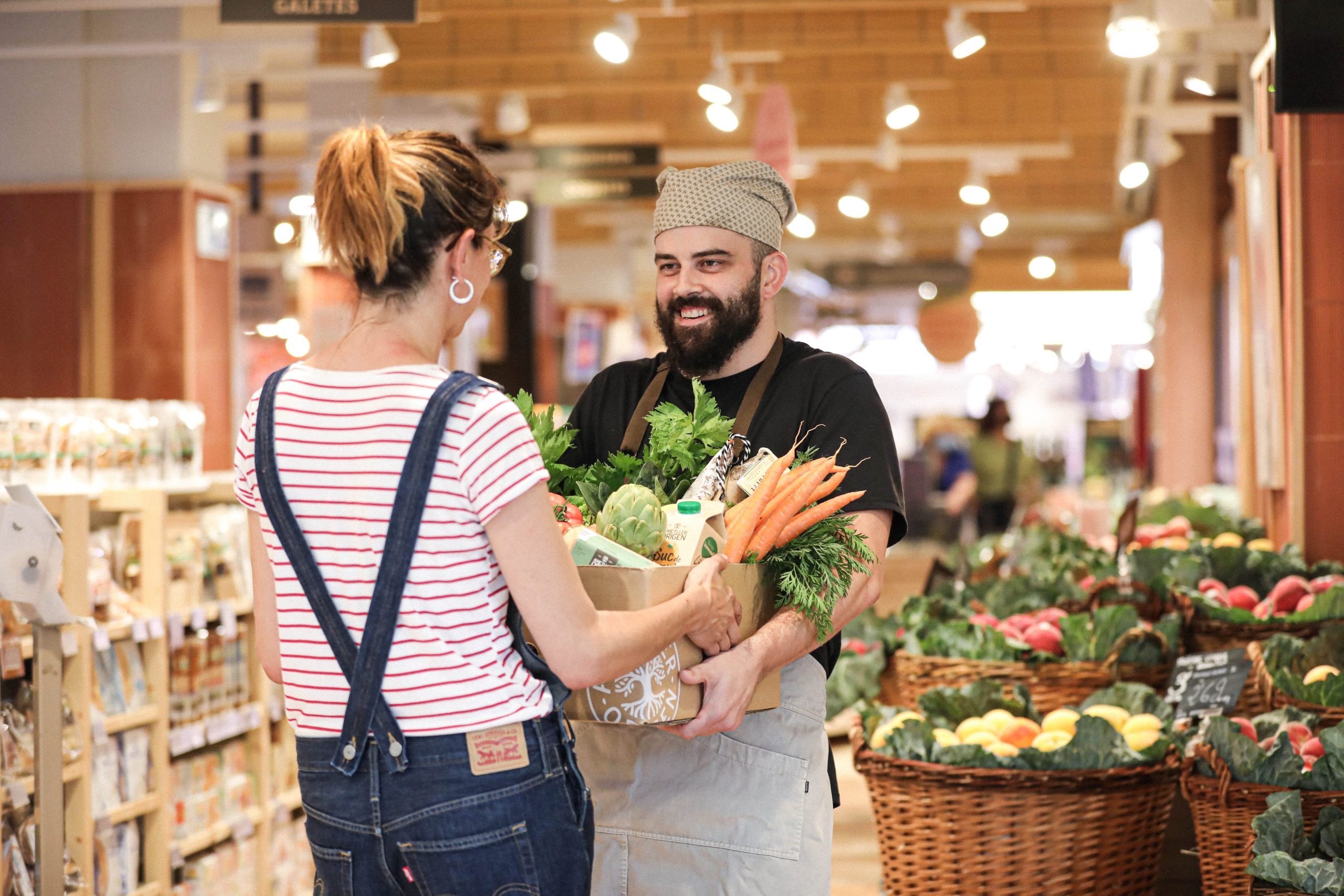 Pero nada de lo que te hemos contado tendría sentido sin nuestros vendedores en cabeza. Ellos son los encargados de contarte con pasión cómo producimos y cultivamos cada uno de los productos, y de explicarte cuál es la mejor manera de cocinarlos para disfrutarlos en la mesa. En nuestro país, no sólo queremos enseñarte a comer de manera más saludable y sostenible, también queremos que sea una experiencia que despierte los 5 sentidos.